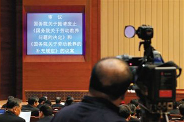 12月28日,十二屆全國人大常委會(huì)第六次會(huì)議閉幕,會(huì)議通過廢止勞教制度的決定,根據(jù)決定,勞教制度廢止前,依法作出的勞教決定有效。