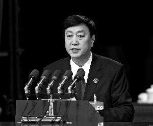 池強(qiáng)在作報(bào)告。晨報(bào)記者 王穎/攝
