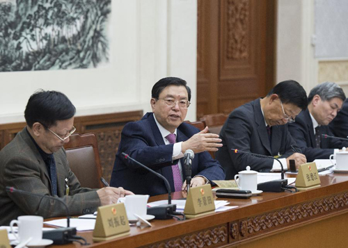 2月25日,十二屆全國人大常委會(huì)第七次會(huì)議舉行分組會(huì)議,審議全國人大常委會(huì)關(guān)于確定中國人民抗日戰(zhàn)爭(zhēng)勝利紀(jì)念日的決定草案和全國人大常委會(huì)關(guān)于設(shè)立南京大屠殺死難者國家公祭日的決定草案。張德江委員長(zhǎng)參加審議。新華社記者 王曄 攝