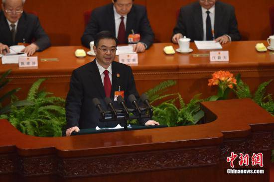 3月12日上午9時(shí),第十二屆全國(guó)人民代表大會(huì)第三次會(huì)議在人民大會(huì)堂舉行第三次全體會(huì)議,聽取最高人民法院院長(zhǎng)周強(qiáng)關(guān)于最高人民法院工作的報(bào)告,聽取最高人民檢察院檢察長(zhǎng)曹建明關(guān)于最高人民檢察院工作的報(bào)告。圖為周強(qiáng)作關(guān)于最高人民法院的工作報(bào)告。中新社記者 金碩 攝