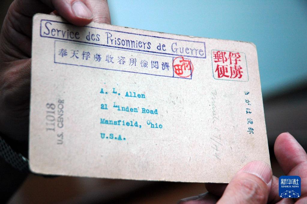這是當年戰(zhàn)俘們寄給親友的實寄明信片(2008年7月31日攝)。64開的明信片上有“俘虜郵便”“奉天俘虜收容所檢閱濟”的明顯印記,這些私人信件當年要經(jīng)過日軍的嚴格審查,蓋上戰(zhàn)俘營司令官松田的名章后才能寄出。2008年7月31日,200余件二戰(zhàn)時期美國老兵珍藏的文物史料,被捐贈給沈陽二戰(zhàn)時期盟軍戰(zhàn)俘營舊址紀念館。