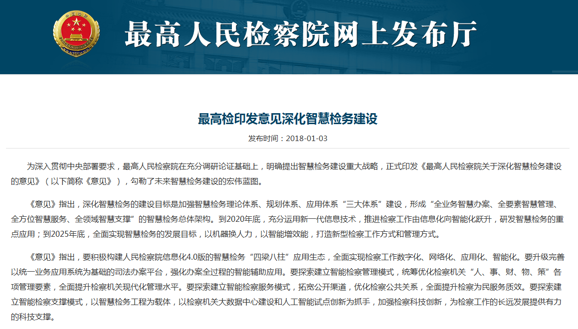 最高檢印發(fā)意見深化智慧檢務(wù)建設(shè)