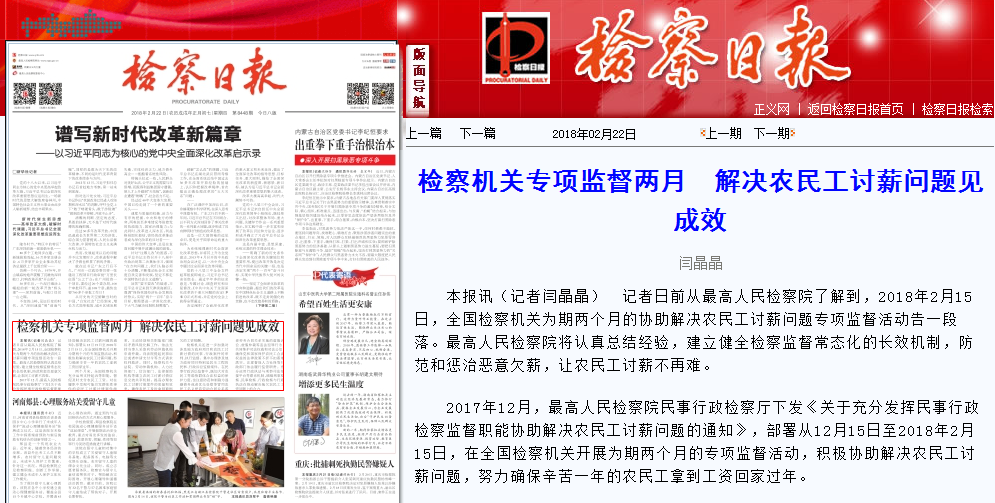檢察機(jī)關(guān)專項(xiàng)監(jiān)督兩月 解決農(nóng)民工討薪問題見成效