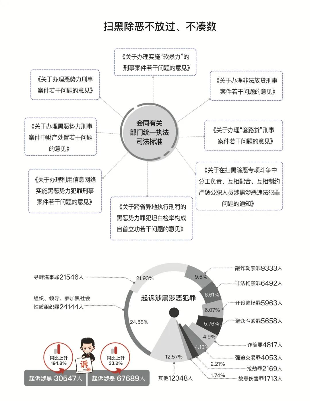嚴(yán)格依法推進(jìn)掃黑除惡專項(xiàng)斗爭(zhēng)。會(huì)同有關(guān)部門制定8個(gè)指導(dǎo)性文件,對(duì)107起重大案件直接掛牌督辦,派出專家組督導(dǎo)孫小果案、杜少平操場(chǎng)埋尸案、黃鴻發(fā)家族案等重大案件。共起訴涉黑犯罪30547人、涉惡犯罪67689人,同比分別上升194.8%和33.2%。堅(jiān)持“是黑惡犯罪一個(gè)不放過(guò)、不是黑惡犯罪一個(gè)不湊數(shù)”,省級(jí)檢察院對(duì)涉黑和重大涉惡案件統(tǒng)一把關(guān)。偵查機(jī)關(guān)以涉黑涉惡移送審查起訴,檢察機(jī)關(guān)依法不認(rèn)定9007件;未以涉黑涉惡移送的,依法認(rèn)定2148件。促進(jìn)深挖根治,起訴“保護(hù)傘”1385人,同比上升295.7%。