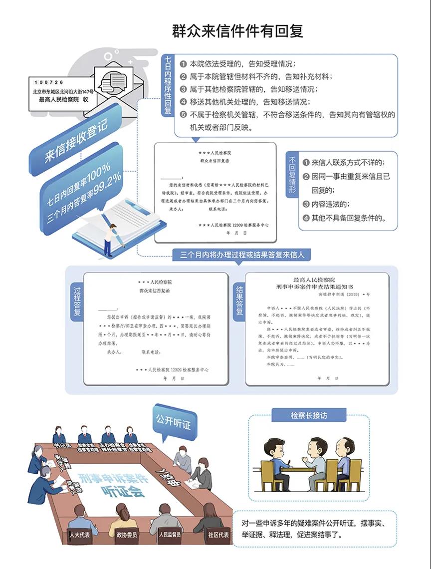 用真情落實(shí)群眾來(lái)信件件回復(fù)制度。關(guān)乎人民群眾的揪心事,人手再緊也要做到,工作再難也要做好。全國(guó)檢察機(jī)關(guān)新收群眾來(lái)信491829件,均在7日內(nèi)告知“收到了、誰(shuí)在辦”;3個(gè)月內(nèi)辦理過(guò)程或結(jié)果答復(fù)率99.2%。件件回復(fù)不是關(guān)鍵,案結(jié)事了才是根本。四級(jí)檢察長(zhǎng)接待信訪群眾16135次。邀請(qǐng)人大代表、政協(xié)委員、人民監(jiān)督員、社區(qū)代表等對(duì)1244件申訴多年的疑難案件公開聽證,擺事實(shí)、舉證據(jù)、釋法理。去年底又開通聯(lián)網(wǎng)辦信,流轉(zhuǎn)、查詢、反饋全程提速。