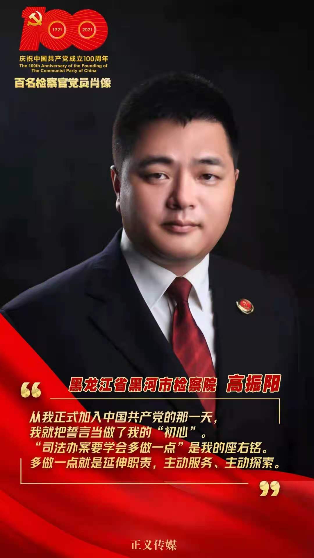 高振陽,黑龍江省黑河市檢察院第一檢察部主任,40歲,黨齡7年。