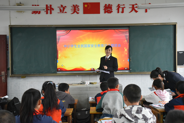 ■大家好,我是來(lái)自四川省夾江縣第一小學(xué)校2017級(jí)6班的黃小睿,今年12歲。校園中,我時(shí)常能看見(jiàn)一個(gè)匆忙的身影,穿梭在操場(chǎng)或是走廊,有時(shí)又會(huì)出現(xiàn)在教室的講臺(tái)上。班主任向同學(xué)們介紹說(shuō),她就是夾江縣檢察院第一檢察部的檢察官安合紅,同時(shí)也是我們學(xué)校的法治副校長(zhǎng)。今年的4月15日是全民國(guó)家安全教育日,安合紅副校長(zhǎng)走進(jìn)我們班,帶來(lái)了一堂精彩的國(guó)家安全法治課。
