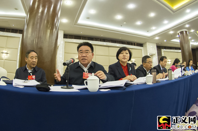 3月14日,甘肅代表團舉行小組會議,審議兩高報告。全國人大代表、張掖市委書記毛生武認(rèn)為,今年兩高報告文風(fēng)樸實,數(shù)據(jù)詳實。他建議在深化司法體制改革中,檢察官、法官隊伍建設(shè)應(yīng)充分考慮地方實際情況。正義網(wǎng)記者程丁攝