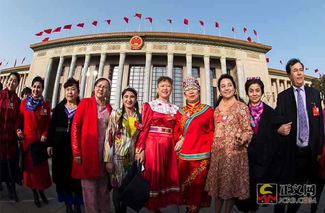 3月5日上午,第十二屆全國人民代表大會第四次會議在人民大會堂開幕,國務(wù)院總理李克強(qiáng)作政府工作報告,審查計(jì)劃報告和預(yù)算報告。新疆代表團(tuán)代表著盛裝出席會議。正義網(wǎng)記者程丁攝