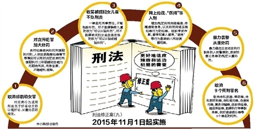 2015年8月29日,第十二屆全國人大常委會第十六次會議審議通過了《中華人民共和國刑法修正案(九)》(下稱刑法修正案九)。該修正案共有52個條款,對刑法作出了較大幅度的修改、完善。