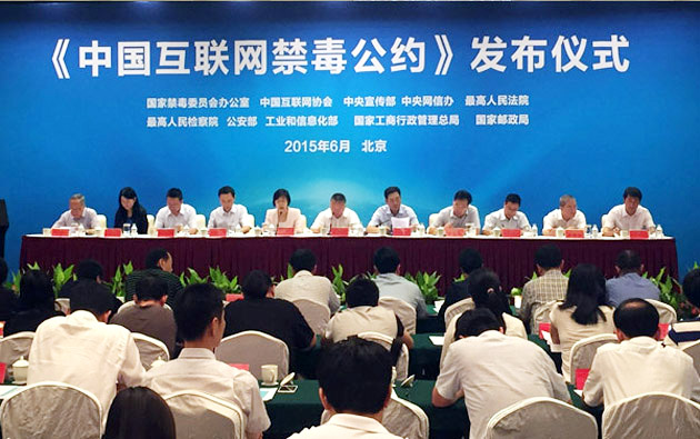 2015年6月29日,國家禁毒委員會辦公室牽頭會同中央宣傳部、中央網(wǎng)絡安全和信息化領導小組辦公室、最高人民法院、最高人民檢察院、公安部、工業(yè)和信息化部、國家工商行政管理總局、國家郵政局和中國互聯(lián)網(wǎng)協(xié)會,在北京聯(lián)合發(fā)布《中國互聯(lián)網(wǎng)禁毒公約》(以下簡稱《公約》)。50家國內(nèi)主要互聯(lián)網(wǎng)企業(yè)以及5家寄遞企業(yè)負責人現(xiàn)場簽署承諾書,宣誓對網(wǎng)絡涉毒問題保持“零容忍”。