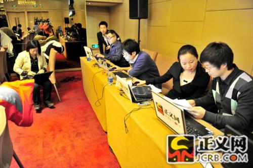 12月24日上午9時,由正義網(wǎng)與騰訊微博主辦的“政法微博與社會管理創(chuàng)新”峰會將在北京召開。與會嘉賓將就政法信息微博公開現(xiàn)狀、突發(fā)政法輿情微博應(yīng)對機制、政法官員微博內(nèi)容規(guī)范、微博問政與社會管理創(chuàng)新等問題進行探討。會議開始前,正義網(wǎng)工作人員忙著做各項準(zhǔn)備工作。楊征 謝天維/攝