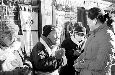 金淑萍在慰問貧困戶。資料圖片