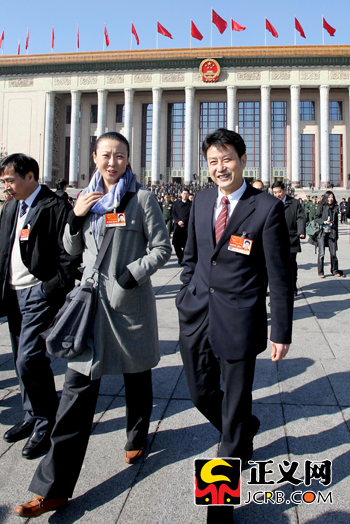 3月4日上午,十一屆全國(guó)人大四次會(huì)議召開預(yù)備會(huì)。為中國(guó)女排發(fā)展作出貢獻(xiàn)的陳忠和代表與馮坤代表一起走出會(huì)場(chǎng)。傅偉/攝