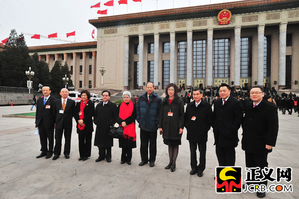 3月14日上午,第十一屆全國人民代表大會第四次會議在北京人民大會堂舉行閉幕會。會議批準(zhǔn)了政府工作報告、“十二五”規(guī)劃綱要、全國人大常委會工作報告及“兩高”工作報告。圖為澳門代表團(tuán)在人民大會堂前合影留念。程丁/攝