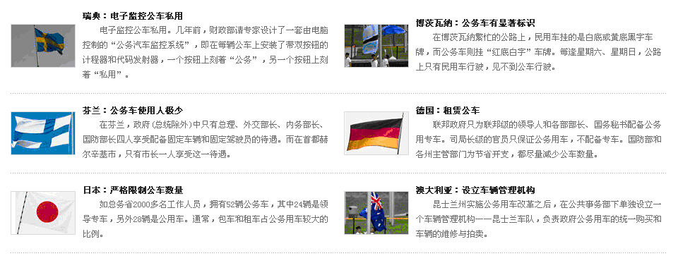 ●公車貨幣化。其措施是公車全部收回,公務(wù)人員按照行政級別給予補(bǔ)貼。 ●公車集中管理。其措施是黨政機(jī)關(guān)的所有公車全部停用,或上繳至各區(qū)組建的機(jī)關(guān)公務(wù)交通服務(wù)車隊(duì),或拍賣收回部分財政經(jīng)費(fèi)。 ●兩者模式的結(jié)合。取消單位的公務(wù)車,所有公務(wù)用車集中至杭州市機(jī)關(guān)公務(wù)用車服務(wù)中心,單位公務(wù)用車可向中心提前預(yù)約租用,同時按級別給公務(wù)員發(fā)放車貼。