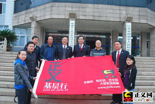 12月7日下午,正義基層行到達(dá)南通市通州區(qū)人民檢察院,檢察長李建國正在正義基層行旗幟上簽名。 張慶
